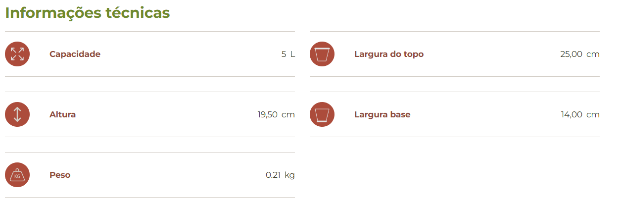 Versatilidade de Plantio: Volume de 5L ideal para uma ampla variedade de plantas de pequeno e médio porte.