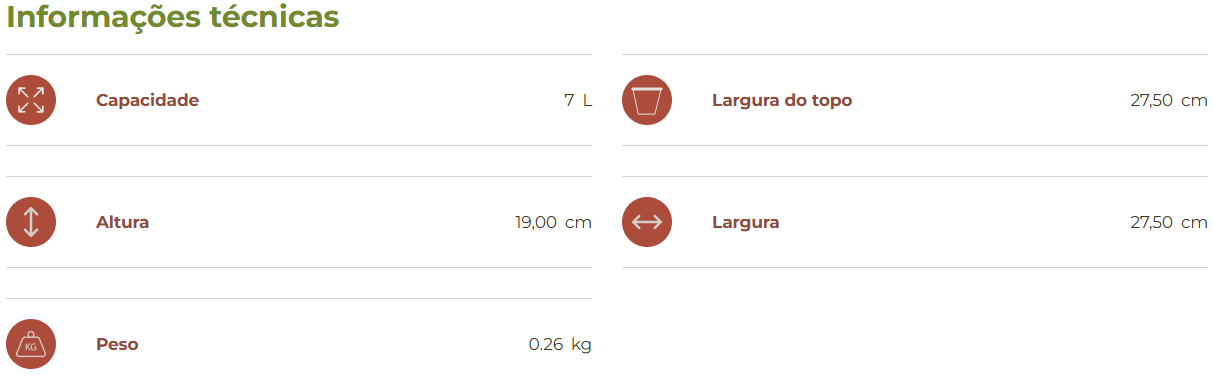 Capacidade Ideal: 7 litros para plantas que necessitam de espaço moderado para raízes.