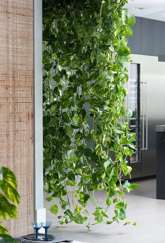 Efeito Visual: O crescimento pendente cria uma "parede viva" que traz vida instantânea a qualquer cômodo.